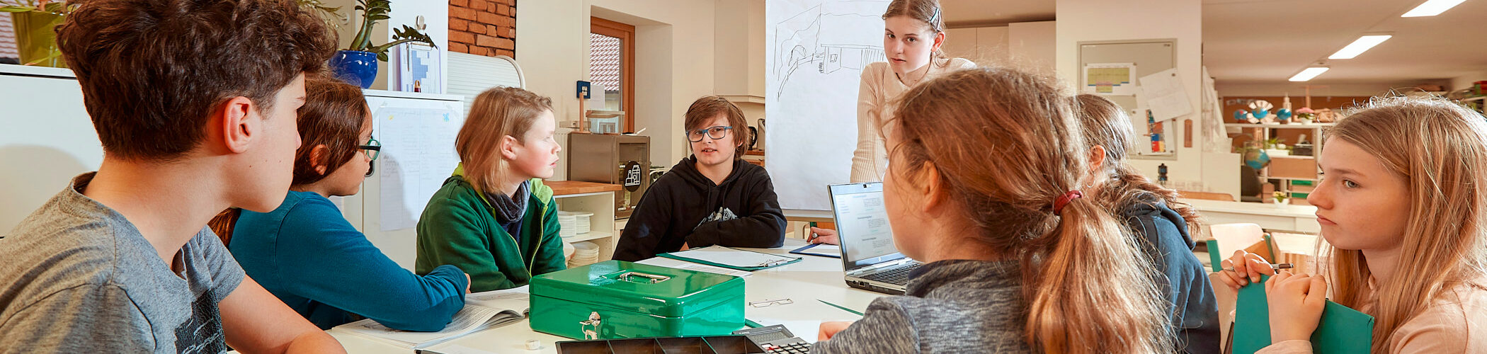 Die Sekundarstufe richtet ihren Bildungsplan ganz nach dem Erdkinderplan aus. Wir antworten damit auf aktuelle gesellschaftliche Herausforderungen und machen gute Bildung für 12- bis 15-jährige auf eine neue, ganzheitliche Art möglich. Wirtschaftliche Kompetenz durch echte Verantwortung steht bei uns auf einer Ebene mit Persönlichkeitsbildung und Sozialkompetenz. Wir verbinden Lernen mit praktischem Handeln.